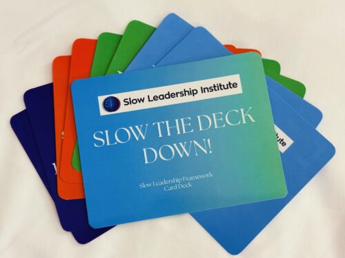 Last week, at the OSCLG Conference in Memphis, Sheryl, Rachel, and I focused on the notion that “we are each other’s” when we debuted our beta deck of Slow Leadership cards in a workshop we named “Slow the Deck Down.” Alongside our session participants, we worked through challenging leadership scenarios using the prompts to practice intention, other-centeredness, and self-grounding.